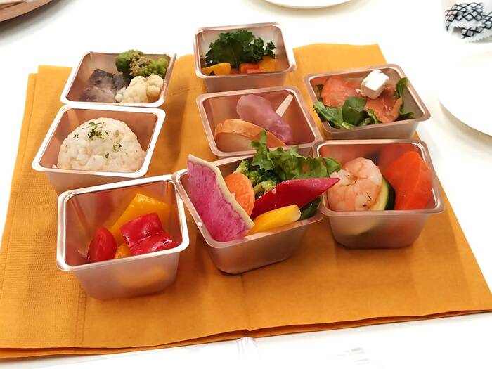 二度目の利用です。カップに小分けで盛り付けられている点、1人あたり1,000円からオーダーできるコスパの良さ、品数の多さで見た目も鮮やかです。