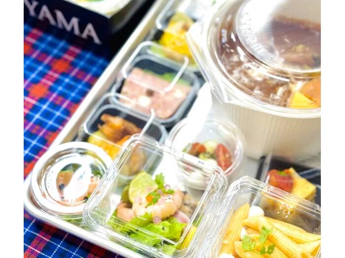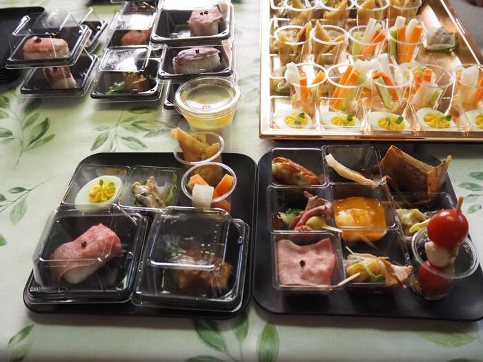 しっとり鶏ハムやローストビーフ、野菜すし等。シェフ手仕込みの和要素を取り入れた洋食を全プラン「小分け」スタイルでご提供