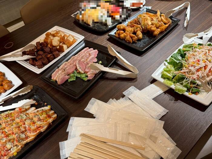 お肉系が多いので、さっぱりしたものを1〜2品ほど自分で用意すると良いかもしれません。