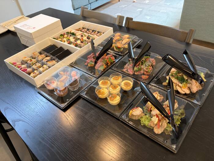 10人分の注文がとてもコンパクトに梱包されていて、セッティングがしやすかったのと、トレーに小分けにされていたので食べやすかったです。