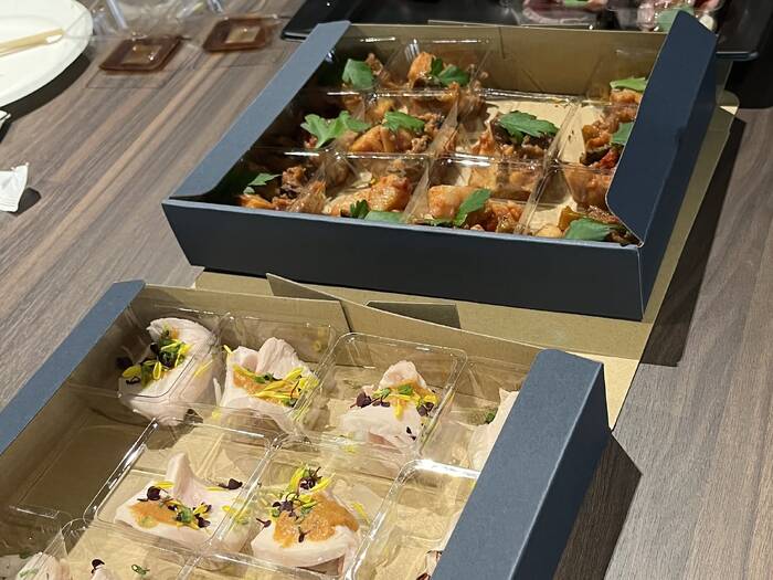 お客様を呼んでの懇親会だったので食べやすい小分けが良い一方で、貧相に見えたくないからボリュームメニューも欲しい。