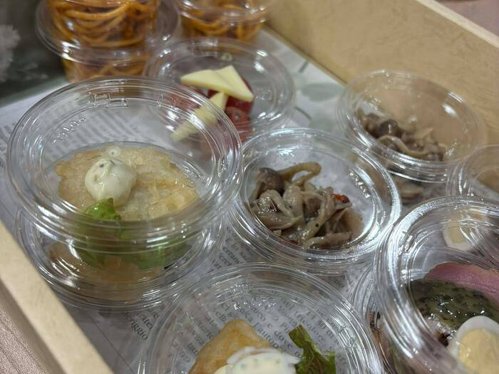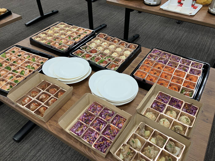 どの料理もおいしく小分けになっているので、立食パーティーにはとても便利でした。