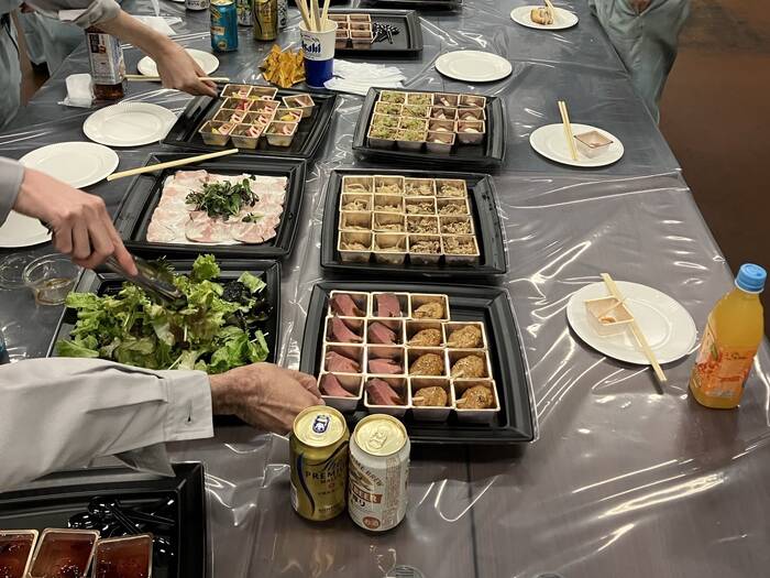 人数は計40名ほどなので、追加で近所のスーパーで総菜とお菓子を購入しました。