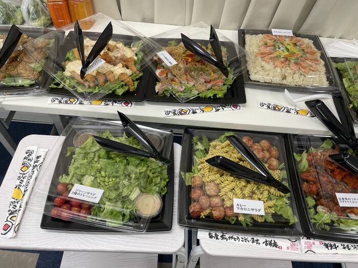 サラダからお肉、揚げ物、パスタなど色々楽しめました。