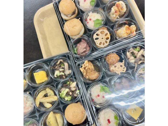 バラエティに富んだ様々な創作料理をお届け。目を惹くローストビーフのちらし寿司や、味噌カツ仕立てのミニバーガーなど、にぎやかにテーブルを彩ります。