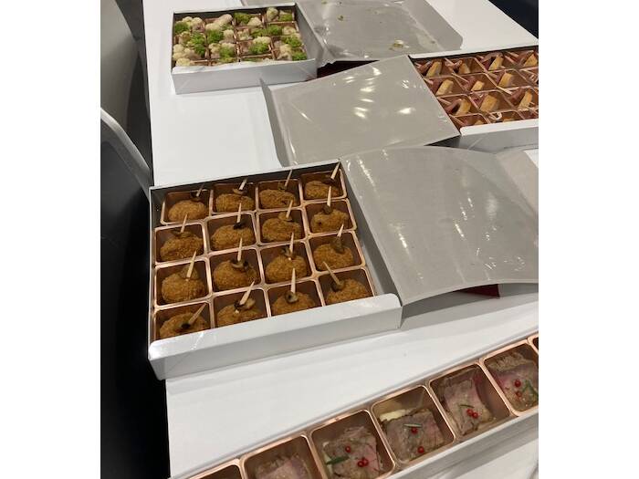 会社の懇親会で利用しました。2500円のコースでしたが、品数もたくさんあり、さらには小分けになっているので皆取りやすくて良かったです。また、カラーナプキンがあることによって、雰囲気がでます。おすすめです。