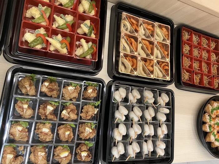 こういった小分けブッフェ?は洋風のものが多いイメージでしたが、やはり年配の方には和食の方が人気だと感じますので、お蕎麦やだんごも入っているこちらは大好評でした。