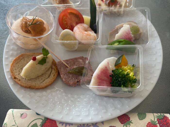 器に合わせてだと思うのですが、いぶりがっこと香草クリームチーズのパンが厚すぎるという意見をよく耳にしました。