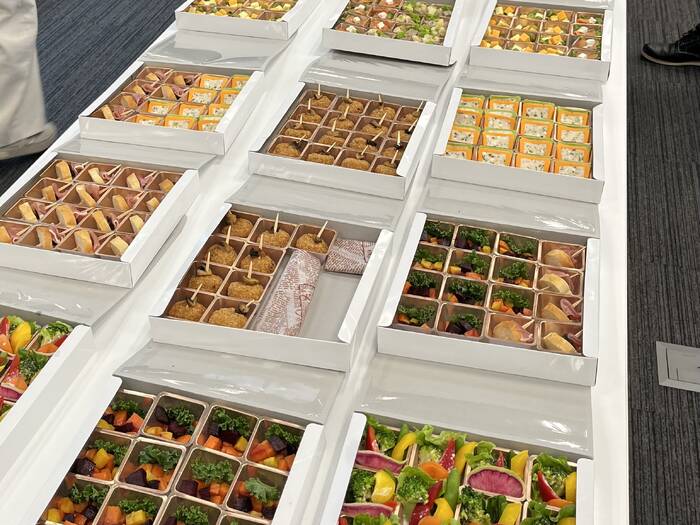今年の忘年会では、ケータリングサービスを利用し、参加者全員が大満足の会となりました。品数が非常に多く、さまざまな料理が揃っていたため、好みに合わせて色々な味を楽しむことができました。また、料理が一つ一つ小分けされていたため、取り分けや配膳の手間が少なく、スムーズに進行できた点も大きな魅力でした。そのおかげで幹事の負担も軽減され、参加者同士がゆっくり歓談する時間を確保でき、より一層楽しい時間を過ごすことができました。来年もぜひ利用したいと思える素晴らしいケータリングでした。