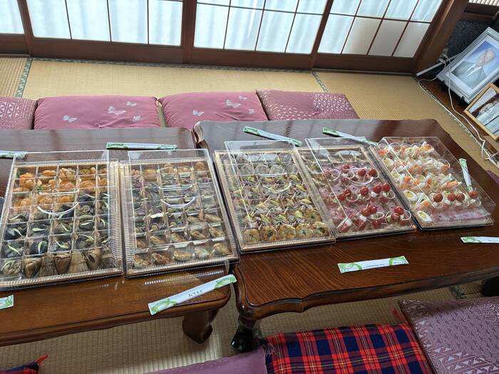 とてもカラフルで直前の注文でも気になるオードブルのお店がたくさんあり、こちらのオードブルにいたしました。