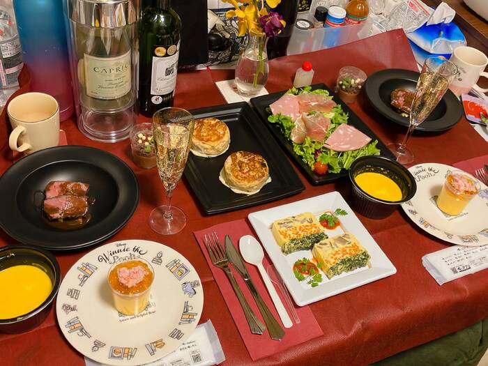 義父母が来てくれたので、ケータリングをしてお家で食べました。小分けになってて取りやすく、どれも美味しかったです。温める料理がヒモを引っ張ってもしばらく何も起きず、あれ?となってしまいましたが、しばらくすると温まり始めました。義父母も美味しいと喜んでくれました。お料理のお届け時間が18:00〜19:00と幅が広いので、もう少し細切れにしていただけるとありがたいです。