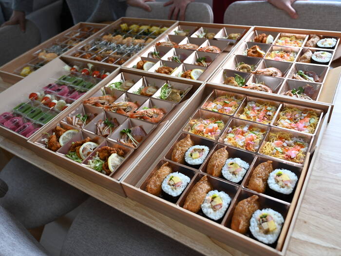 バラエティに富んだ様々な創作料理をお届け。目を惹くローストビーフのちらし寿司や、味噌カツ仕立てのミニバーガーなど、にぎやかにテーブルを彩ります。