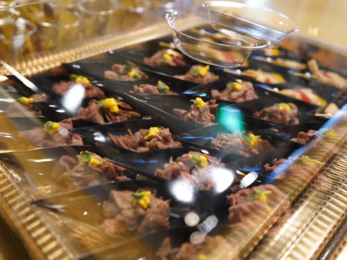 野菜は少なめのケータリングを探していました。味見のため先に食べましたが肉寿司が特に美味しく、いい感じに塩が効いています。提供時も真っ先に無くなっていました!ボリュームコスト文句なしです。