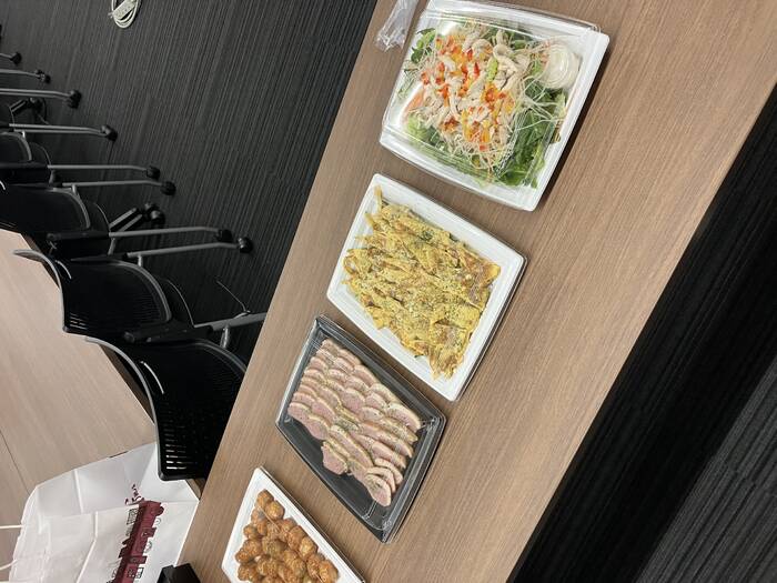 種類がいくつかあって値段に合わせて選択しやすかった。味も美味しかったうえに、紙のトングも品数分ついてきたのがよかった。特にペンネが美味しくて好評だった。また機会があれば利用したい。