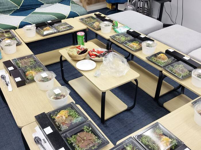 一人ずつの小分けになっているBOXだったので、時間がない人も持ち帰ってもらうことができました。冷めていてもおいしいメニューで、適度なボリュームもあって、みんなに好評でした!また利用したいと思うサービスでした。
