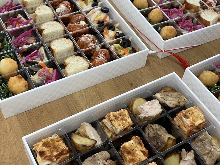 京橋の老舗グランメゾンで修業したシェフが作る本格フレンチのコースをオードブルにしてお届けします。小分けなので準備も簡単、食べやすさも◎。