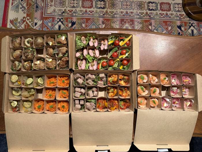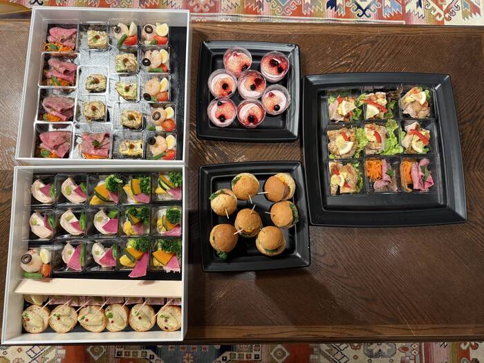 忘年会でのケータリングに使用しました。1人ずつに美しく小分けにされていので、大皿料理のように自分たちで取り分けをせず、楽しむことができました。料理も美味しかったです。