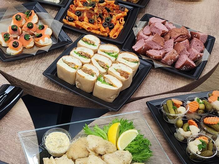 社内懇親会にて利用させていただきました。品数も多く、デザートもついて一人2,000円くらいでとてもコスパもよく、お料理も美味しかったです。梱包もしっかりしていました。トングもすべての料理に使える数量入っていたので助かりました。冷えていましたがどのお肉も柔らかく、お魚のフライも油っぽいこともなく美味しかったのでまた利用したいです。