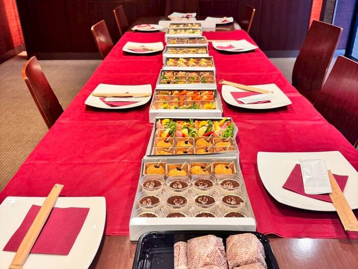 温製や高級食材料理の他、当店でしか味わえないお料理を並べるだけでテーブルコーディネートが出来る豪華な容器でお届け!ワンランク上の中華パーティ料理