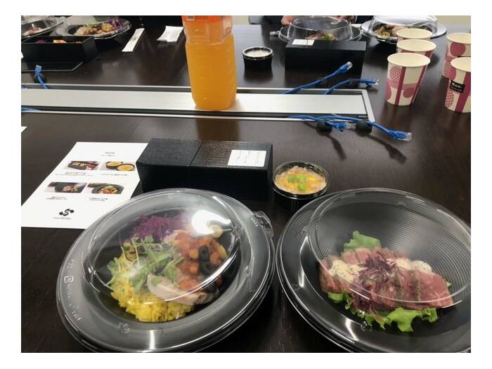 特に印象的だったのは、ローストビーフのボックスです。お肉がしっとりと柔らかく、下に敷かれた野菜との相性も抜群でした。また、デザート系のカップ(マカロンやムース)も甘すぎず上品な味付けで、午後の仕事に向けて程よいエネルギーチャージになりました。