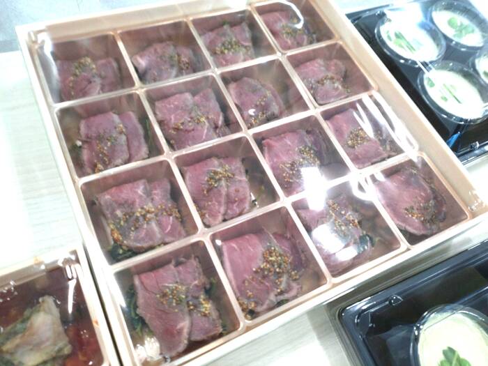 ローストビーフはすぐになくなり、枝豆の茶わん蒸し、エビのムースやいぶりがっこが大変人気でした!次はどれを食べようかなと参加者は悩むくらいでした。デザートでガトーショコラまでついてるのがまたよかったです。またリピートしたいとおもっています。