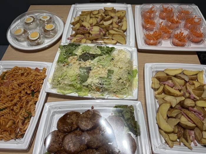 みなさん、パーティーをもっとおしゃれで楽しくしたいと思いませんか?そんなあなたに、かわいいカフェ風のオードブルをご用意しました。人気の洋食メニューが大集合!色とりどりでボリューム満点の料理がテーブルを彩ります。これなら手軽におしゃれなパーティーが開けて、とっても便利!ぜひご利用をお待ちしております。