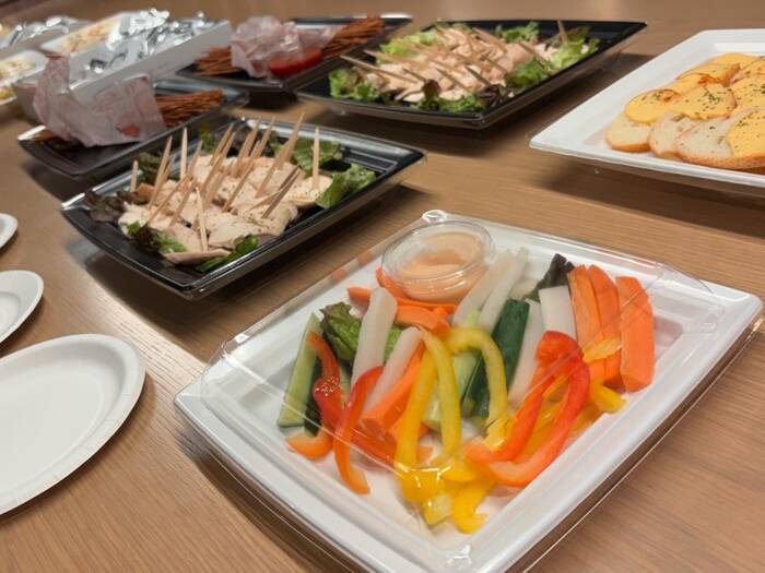 それぞれが、紙皿にサンドイッチをチョイスして、からあげやポテトもつまみながら楽しそうに会話を楽しんでくれたので、