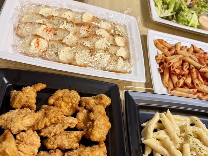 他社の社員を会社によび、40名ほどでの懇親会をするために利用しました。別で小分けの軽食を頼み、追加でサンドイッチを頼みました。
