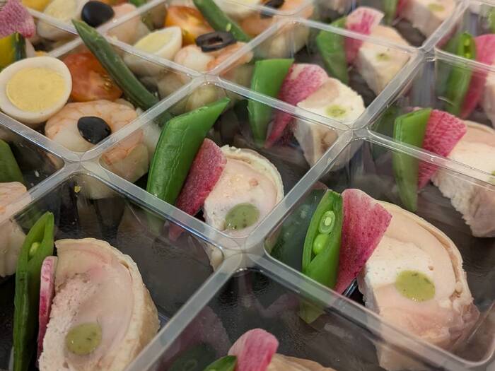 パヒュームさんの2700円のオードブルを発注したのですが、凄く豪華で、盛付けも綺麗で、蓋を取った瞬間、わぁーと歓声が上がりました~❗本当に良かったです。 -