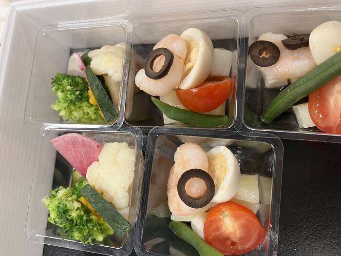 社内懇親イベントにて利用させていただきましたが、どのお料理もとても美味しく、参加者から大変喜ばれました。デザートがあったのも好評でした。カトラリーが付属されているので運営側は助かりました。ありがとうございました。