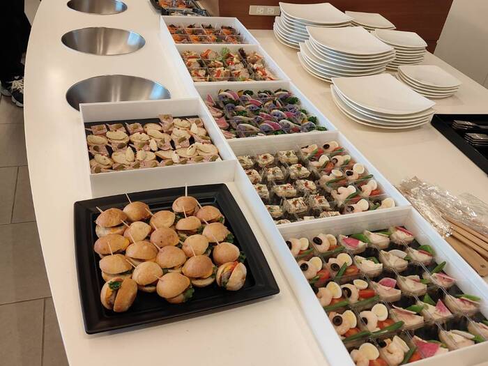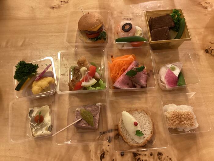会社内のホールで100名くらいの事業報告会後のアフター懇親会のために、シェフコレの中で評価の高かったRestaurant Perfumes(レストランパフューム)さんのオードブルプラン Perfumes 小分け・スタンダードフレンチを利用させて頂きました。