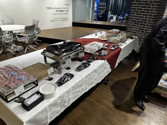 法人専門のケータリングとして、企業イベントや懇親会を多数サポート。A5和牛のローストビーフや新鮮な握り寿司など上質な料理を、プロスタッフがスムーズにご提供。全プランにメニューカードとアレルギー表記付きで幹事様も安心。問い合わせから当日の設営・運営・撤収まで対応し、オフィスや会議室を特別な空間に変える洗練されたパーティー体験をお届けします。