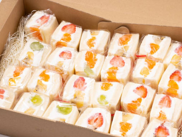 今ちょっとしたブームと言っても過言ではないフルーツサンド。「さくらサンド」では、厳選した季節のフルーツに、口どけのいいクリームをたっぷりとサンド。フルーツの断面がカラフルで可愛らしい仕上がりになっています。食べやすいサイズ、個包装にてお届け。パーティーにはもちろん、ティータイム、リフレッシュメントなど幅広くご利用くださいませ。