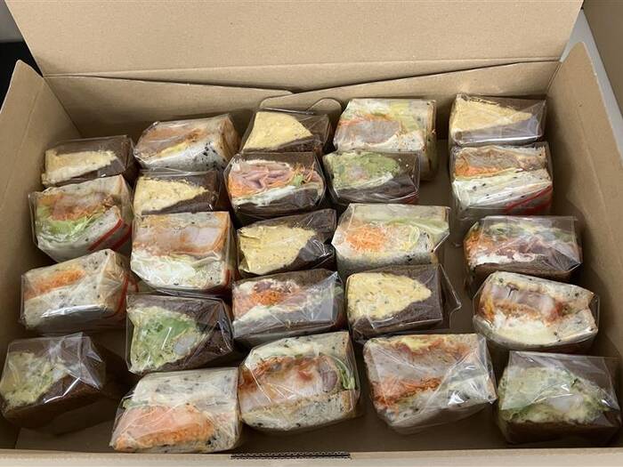 箱を開けた瞬間の美しさが最高で、思わず声が出るほどでした。他スタッフもテンション爆上がり!複数種類のフルーツが入っていて、サンドごとに違う組み合わせなので選ぶのも楽しいです。味も大満足で、クリームと果物のバランスが絶妙。個包装で食べやすく、ふと「また頼みたいな」と思える、そんな素敵なケータリングでした。