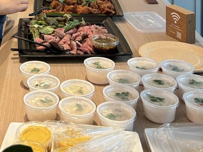 社内親睦会での利用です。海外の社員も多く参加されるパーティーでしたので、自分で味がアレンジできるタコスやチップスを含む計5品を用意。設置・撤収も行いました。