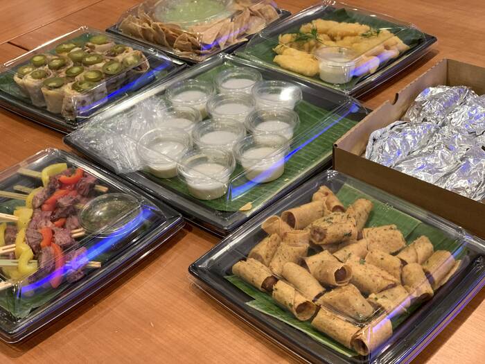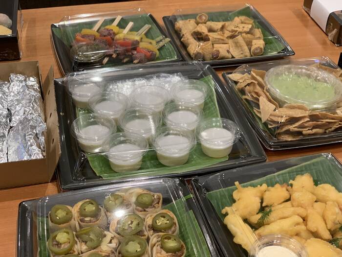 一人分ずつ小分けにされている料理もあり取り分けやすく、また、タコスは好きなものを入れて食べられるので参加者も会話を楽しみながら