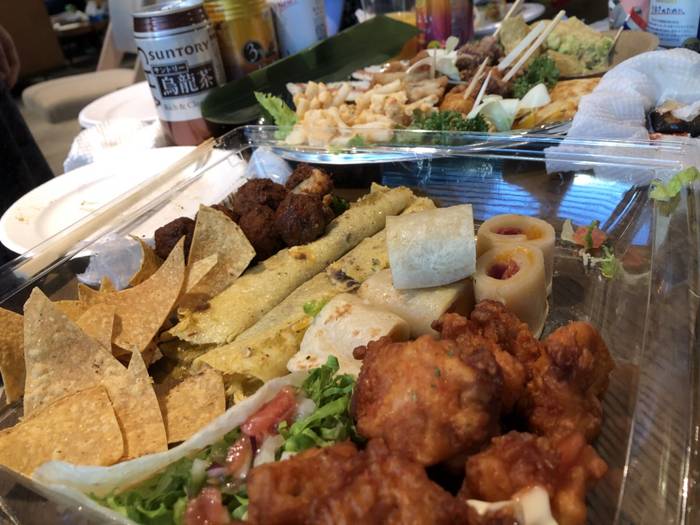 50人くらいの規模で実施したので、サルサカバナさんの『オードブルプラン メキシカンビュッフェデリバリーAコース【5品】 』を注文しました。