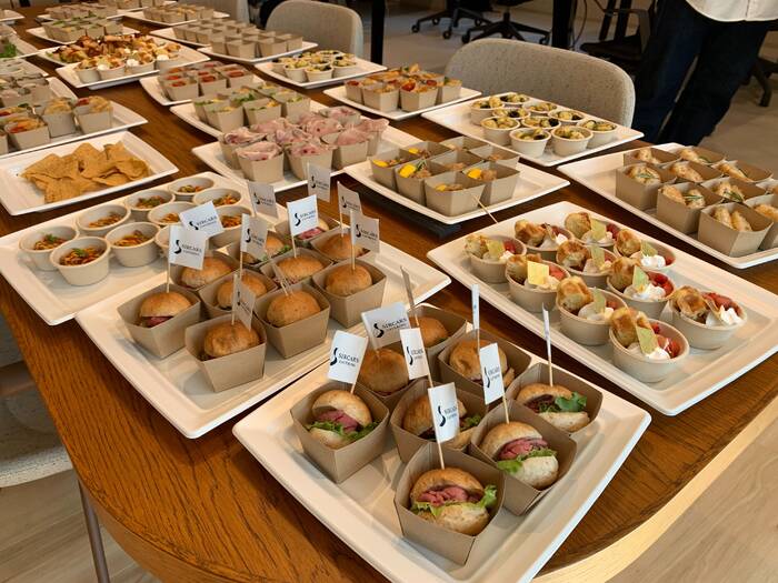 直前間際でしたが対応していただき助かりました。何よりメニューすべてが大変美味しく大満足でした。デザートのフルーツサンドや肉寿司も本当においしかったです!見栄えも豪華で、ぜひまた利用したいと思っています!搬入も大変スムーズで助かりました。