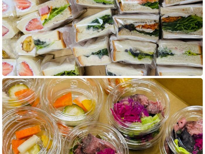 新年会で初めて利用させていただきました。納品から支払いまでスムーズでした。段ボール箱2つだったのでゴミは嵩張りましたが、中の箱開けた時は予想以上に綺麗でテンション上がりました。野菜サンドもフルーツサンド(生クリームの甘さも上品でした)もボリュームあって、しかも個包装で食べやすかったです。また利用したいと思います。
