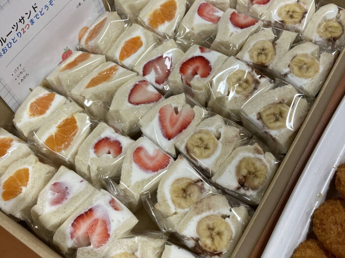 バナナ、イチゴ、ミカンの三種のフルーツサンドを注文しました。