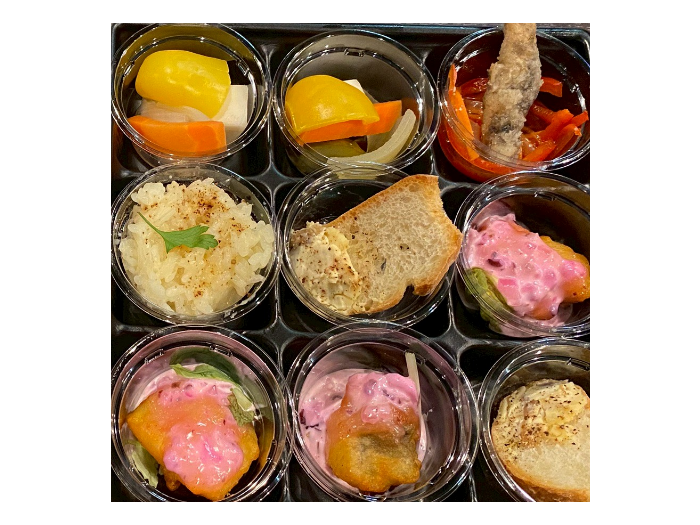 めひかりのエスカベッシュやいぶりがっこクリームチーズなど、定番料理にひと工夫加えた味が楽しめるオードブルは当店ならでは。またこれらのお料理を全て小分けの容器でご提供するプランもございます。会話を邪魔することもなく片手で簡単に取り分けができるので立食パーティーなどにピッタリです。