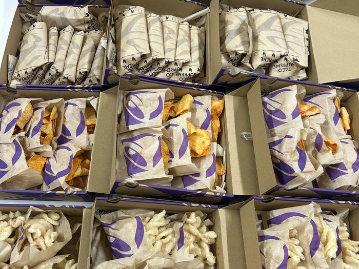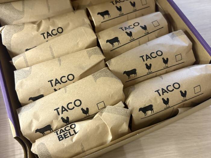 タコベルのケータリングができる!ということで、幹事も喜んで注文。結果、参加者からも名指しで喜んでもらえました。内容もタコス、ブリトー系、スナック系とバランスがよく、残らず完売しました。