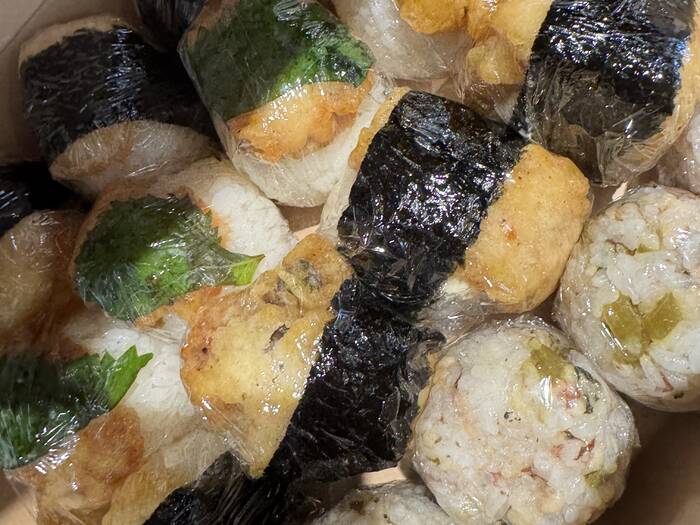 4種類の天むすがそれぞれ種類がわかりやすいように、箱に詳細情報を記載していただいたり、紙皿や箸などもつけていただき、細やかな配慮がとてもありがたいお店でした。