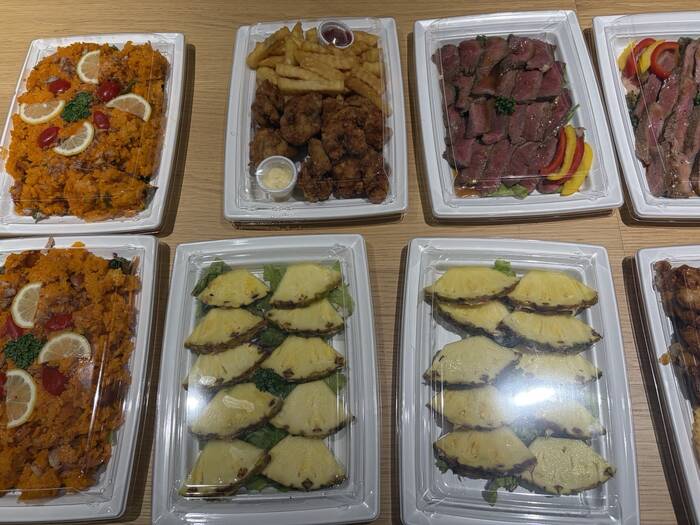 50名ほどの社内パーティで使用しました。小分けよりもとりわけスタイルがよかったので選びました。他にもケータリング料理をオーダーしていたので30名分とローストビーフを追加しましたが、肉はすぐにSOLDOUTでした。サラダは葉っぱものですが好きな人は食べてましたが、パイナップルはちょっと不評でしたね。全体的にコスパはよかったと思います。できれば肉だけのコースも作っていただきたいです。