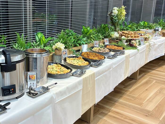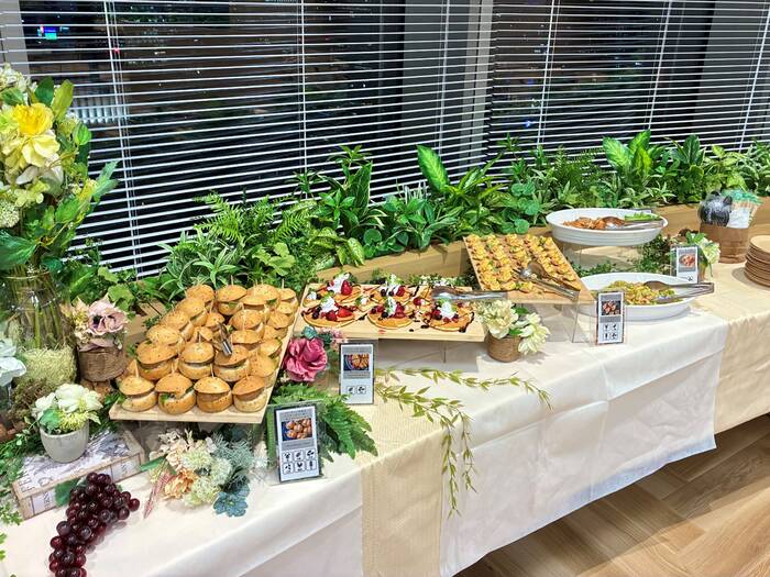 「料理と演出で記憶に残るひとときを届ける」。目の前で仕上げるライブ料理、温かいまま楽しめる炭火焼き、こだわりのビュッフェやカップスタイルなど、お客様の多様なニーズに合わせたプランをご提供。単なる食事の提供ではなく、笑顔と感動が広がる空間作りを大切にしています。