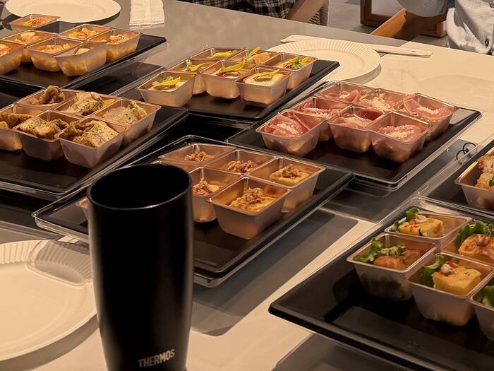 時間通りの配送で助かりました。料理が小分けされており、配膳の手間がなく立食パーティーに最適です。彩りも良くお客様に好評でしたが、非常に美味しく最後は少し余ったため、持ち帰りたいほどの名残惜しさでした。