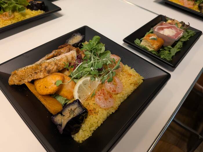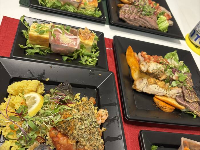 彩りもよく、ボリューム感もありました。味もかぶらないように工夫されていて、皆さんに好評でした。クスクスはスプーンがあると食べやすいと思いました。立食でも着席でも食べやすかったです。