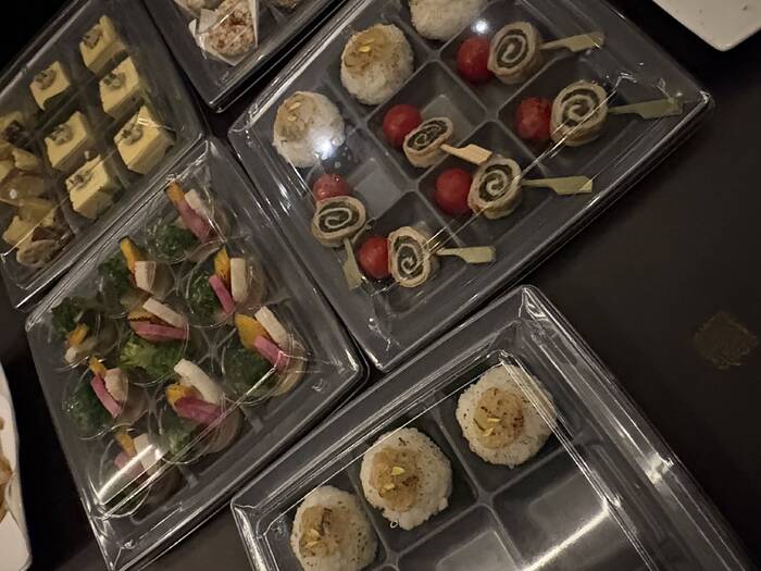 肉や魚の食材に合わせて、当店秘伝の出汁や醤油麴、八丁味噌を使ったソースを考案。パーティー会場で美味しく楽しんでいただけるメニューを考案しました。前菜からメイン、アミューズやデザートまでフルコースで楽しんでいただけるよう品数豊富にお一人ずつ小分けカップにお詰めしてお届けしています。