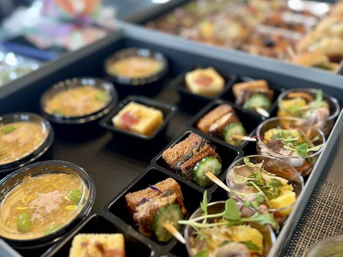 有名フレンチやスペイン料理の名店でキャリアを積んだシェフらが、全てのメニューをお作りしているのが人気の理由!ひよこ豆フムスやバスク風煮込みなど、親しみやすい食材も、本格的な技法と創造性で昇華。幅広い世代のお客様に「美味しい!」と言っていただけるよう、丁寧に盛り付けお届けいたします。また華やかな見た目と、豊富なプランも魅力のひとつです。