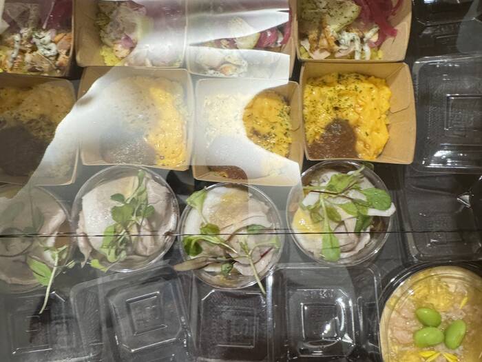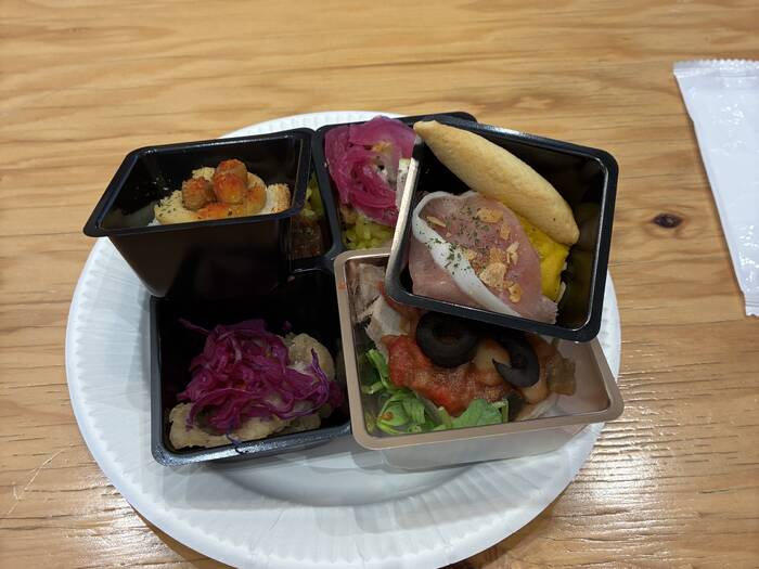 全体的に彩り良く、見栄え良く、料理の種類も幅広く、写真と違って実際はしょぼいということもなく、美味しいお料理でした。全て一人分がカップに入っているので、衛生面や取り分けのしやすさから大変ありがたいです。ただ、たいていのお料理にはどこかしらにスパイスが効いていて、私個人的にはとても美味しく嬉しかったのですが、中にはスパイスが苦手な方もいるので少しマイナスポイントとなりました(見た目ではスパイスが効いていることが全く想像できないものが多いので)。それから、納品後開封してみたら、お料理の一部がひっくり返ってしまっていて、整えるのが大変でした。箱にも水分が沁みてしまっていて配膳箇所へ運ぶのが少し危なかったです。そんなこんなでバタバタしてしまい、写真を撮る余裕がありませんでした。。。